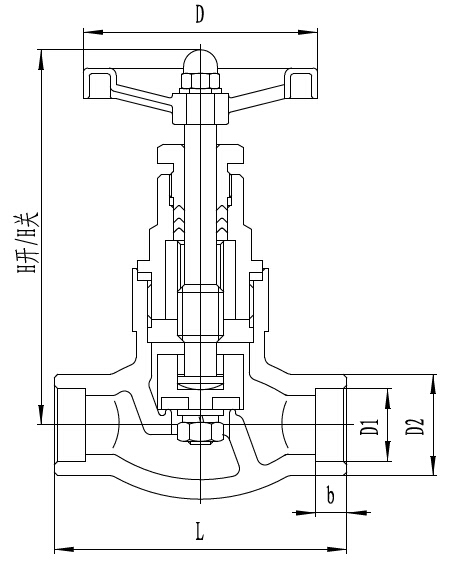 尺寸 產(chǎn)品代號(hào) | DN | H開(kāi) | H關(guān) | L | D | D1 | D2 | b |